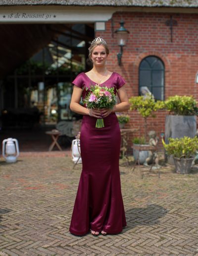 Bij dit maatwerkproject staat een koninklijke uitstaling centraal. De Garnalenkoningin bedenkt vooraf ideeën over haar outfit en kleur; waarna ik een ontwerp ontwikkel. De stofkeuze en uitstraling worden zorgvuldig op elkaar afgestemd. In een later stadium worden ook de hofdames en het bloemenmeisje betrokken, zodat hun wensen meegenomen kunnen worden en er een harmonieus, feestelijk geheel ontstaat.